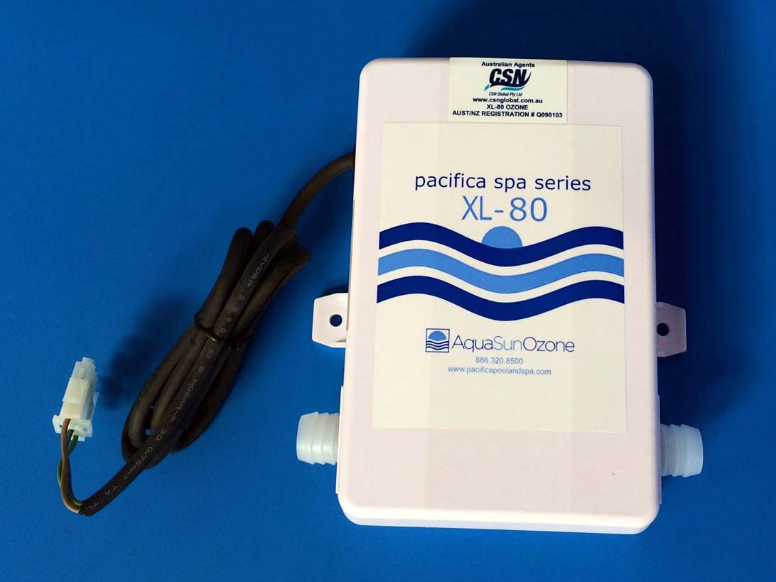 Here at Pacific Spa's we fit the ever reliable Pacifica XL-80 to our spas. The XL-80 is the world's first all-in-one ozone venturi system and features a dual check valve configuration to prevent backflow to the unit.