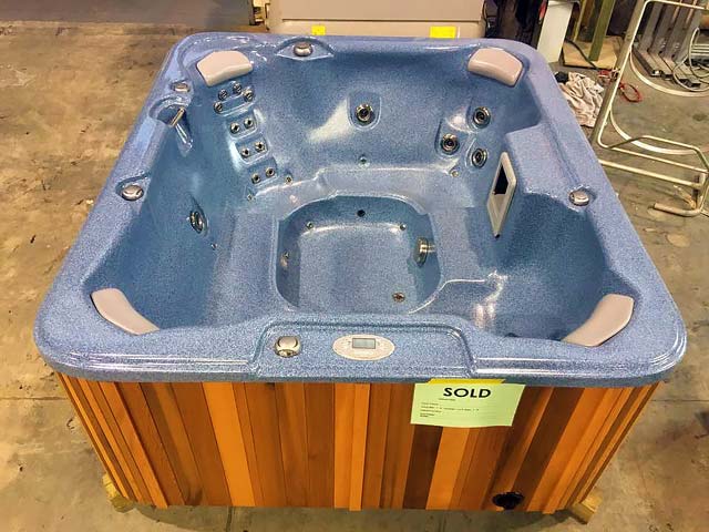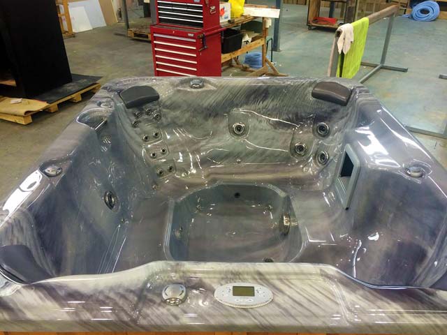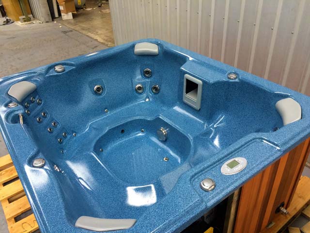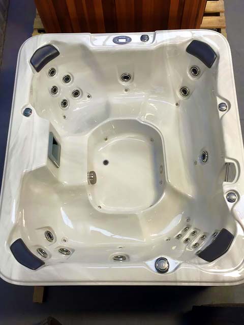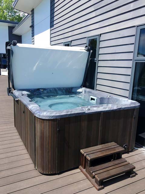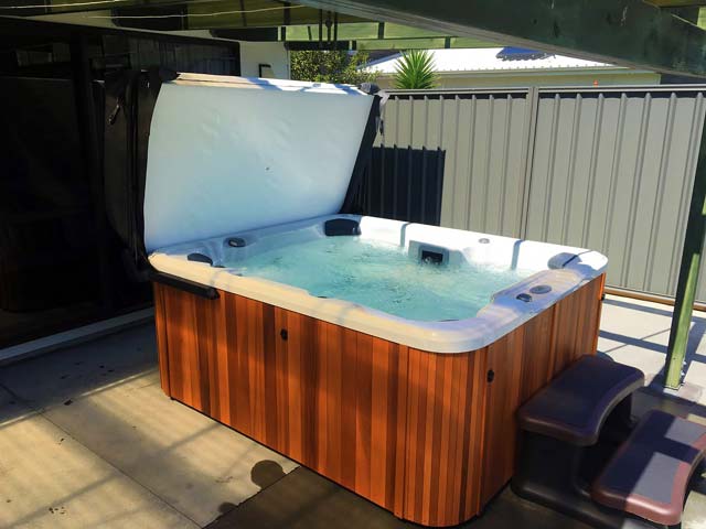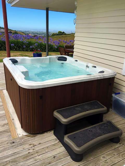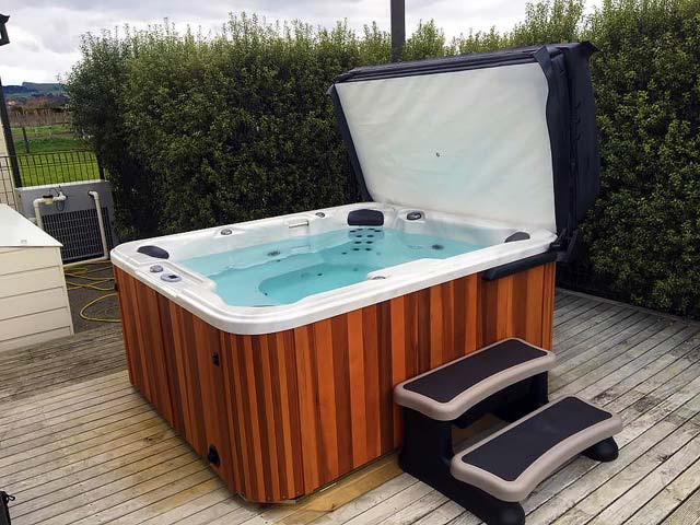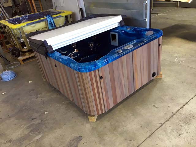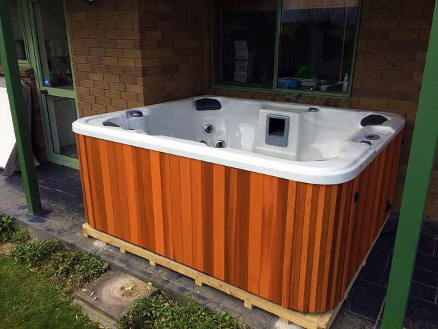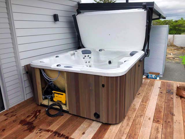 This is a Caledonia Spa that we delivered on a boat to Waiheke Island. A little way outside our free delivery area but not a problem for our professional team.